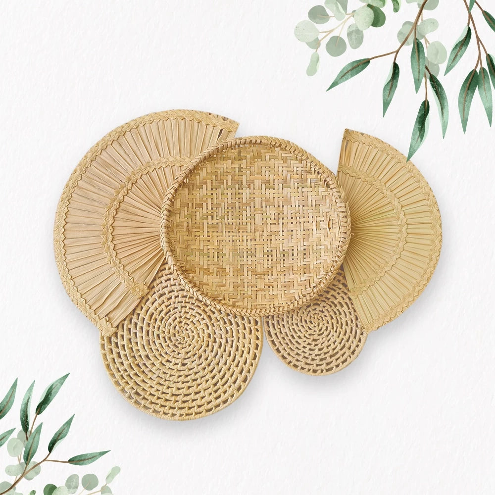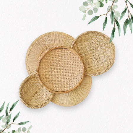 Renove sua casa ou escritório com nossas cestas de palha feitas à mão por talentosos artesãos brasileiros. Cada composição combina peneiras, leques e sousplats em um design atemporal, trazendo elegância e leveza ao seu ambiente.