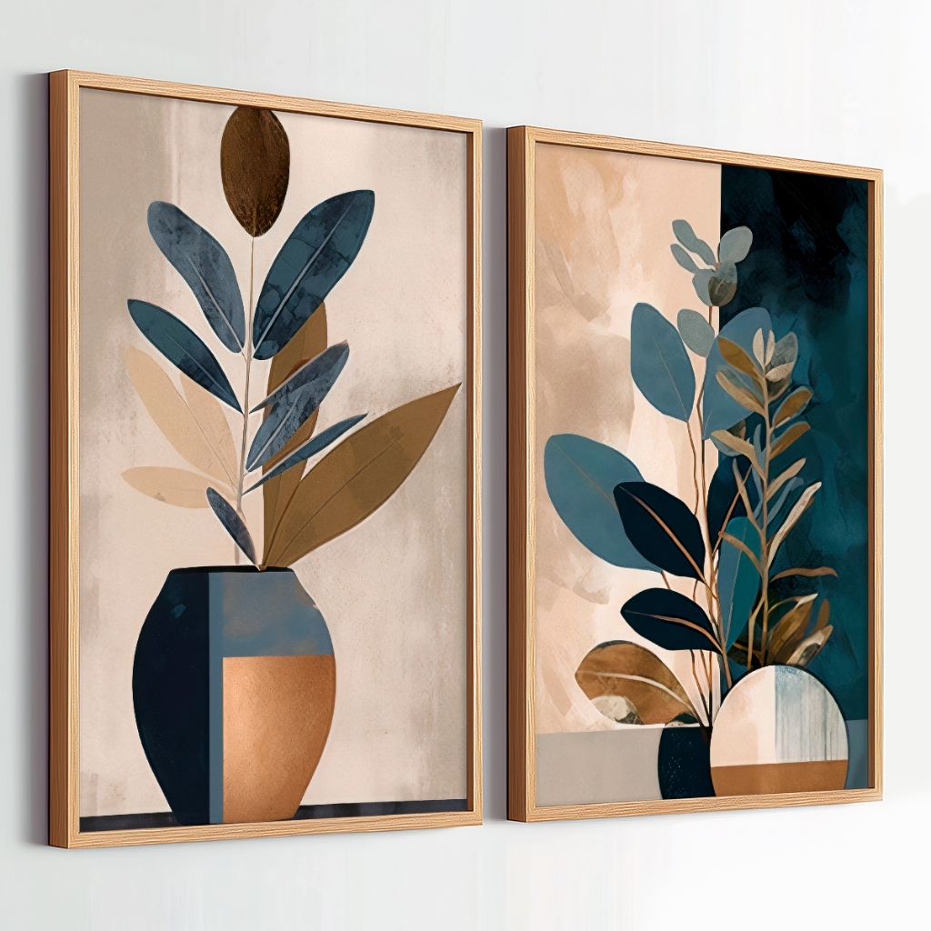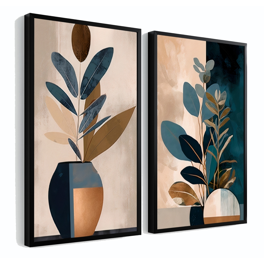 Kit 2 Quadros Moldura Folhagem Abstrato
